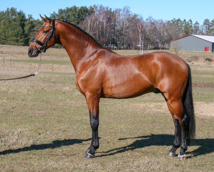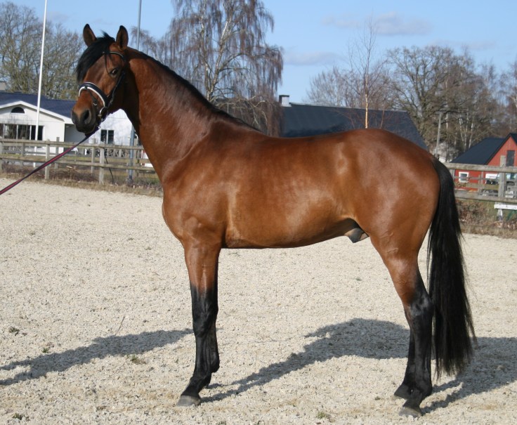 Stämpelhingst som präglar sina avkommor med sitt underbara temperament och fina ridbarhet. Elegans och rörlighet är ett signum.