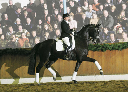 Morfadern Dionysos (De Niro- Rubinstein) har stora framgångar inom såväl avel som sport. Hans tävlingskarriär under sin ryttare Karin Rehbein resulterade i ett 50-tal segrar i svår dressyr tom Grand Prix.